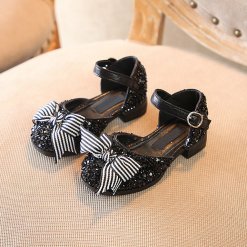 Beautiful rhinestone party heel sandals for your little princess. These sandals are beautifully designer with rhinestone, bow and buckle strap.