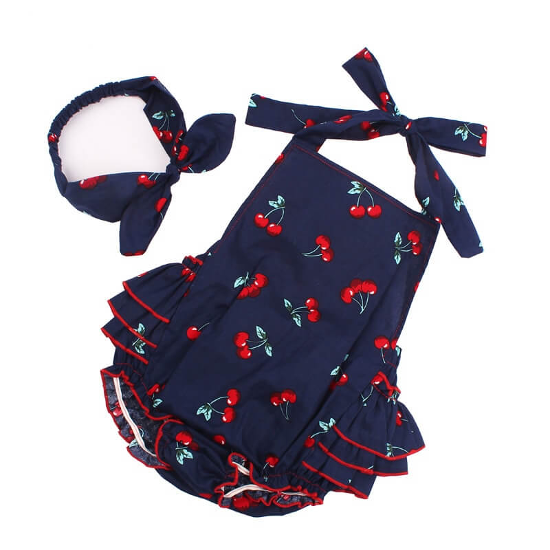 Ready your little one in this darling ruffled romper with vintage sweetness.
