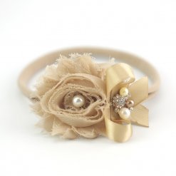 Sweeten up your little one’s wardrobe with this special headband crafted with Rhinestone, Pearl, and Lace.