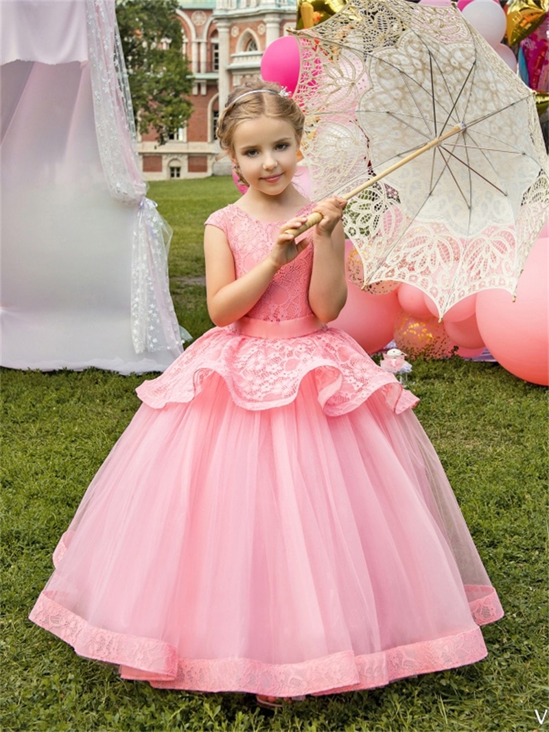 Elegant Sleeveless Flower Girl Dress With Embroidery. This beautiful Ball Gown Dress is decorated with Bow and Embroidery.