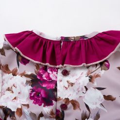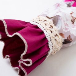 Beautiful floral party dress with flare sleeve. It also comes with matching headband. This is a knee length dress with full sleeve.