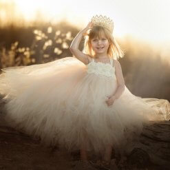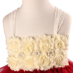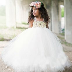 Another Elegant sleeveless tutu wedding dress for your little princess. Add it to her closet for special occasions. Finally, this tutu dress is beautifully designed with pearl and flower work on the front to make it look special.