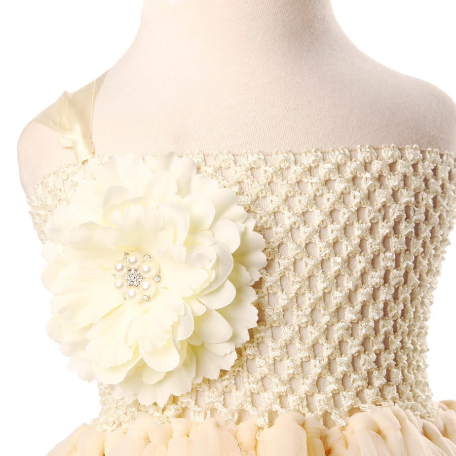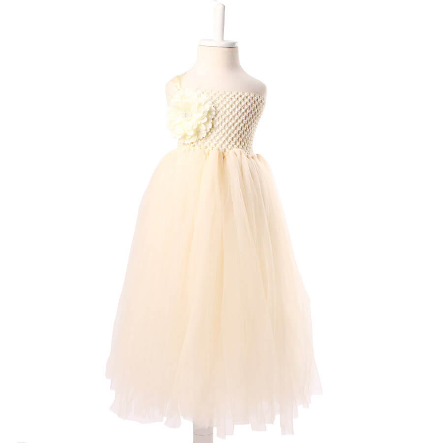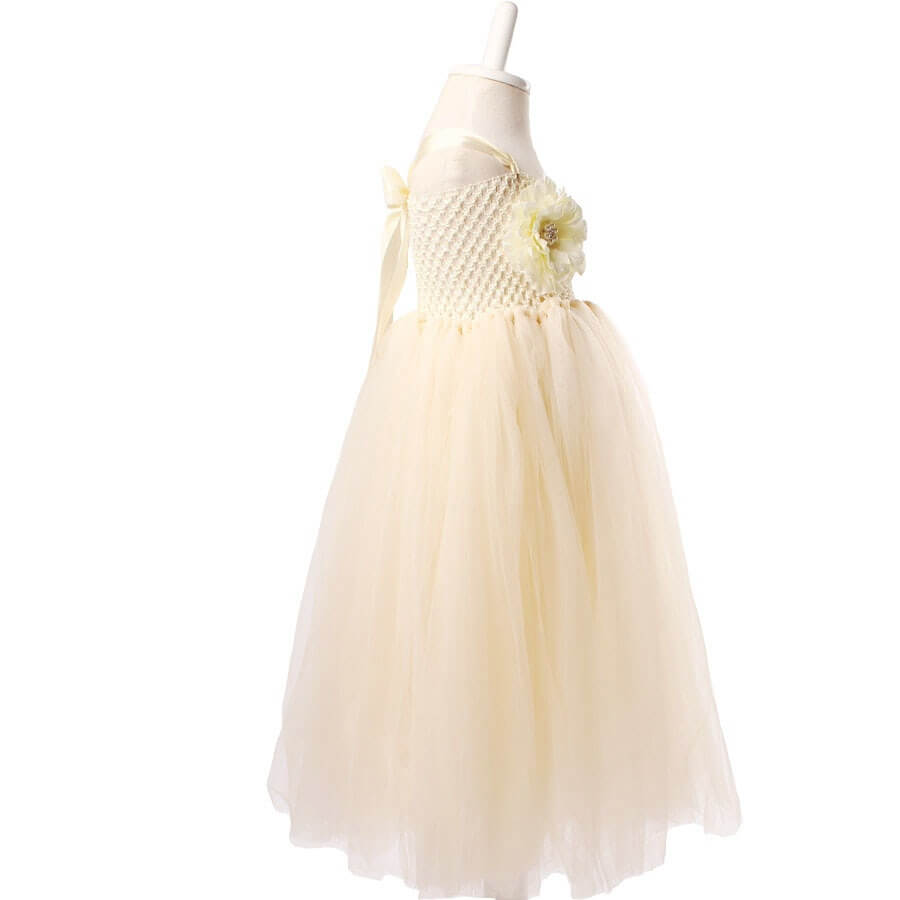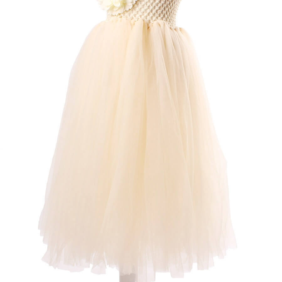 She looks like a fairy tale princess when she dons this luxurious tutu dress, featuring soft tulle strips that lend an ethereal look to this beautiful ivory dress.