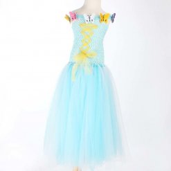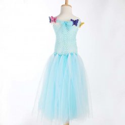 Gorgeous light blue Cinderella dress with colorful butterflies. This dress is made of best soft strips tulle.