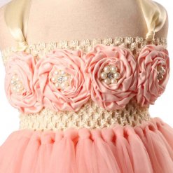 She looks like a fairy tale princess when she dons this luxurious Bridesmaid tutu dress, featuring soft tulle strips and soft pastel colors that lend an ethereal look to this beautiful dress.