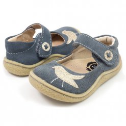 These are from our leather collection. Genuine leather Shoes with a Birdie on top. They are very comfy and has a strap to open and close. Kids love them.