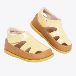 Cute Soft Leather Sandals. It has an easy access velcro strap. The sole and stitching look very stylish. The outsole is made with thermoplastic rubber.