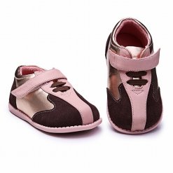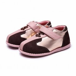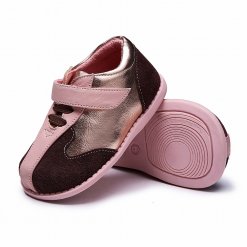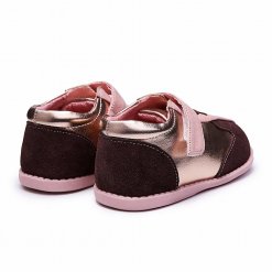 Golden Pink Soft Leather Shoes For Girls. These are from our leather collection. They are very comfy and have a strap to open and close.