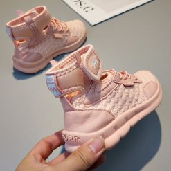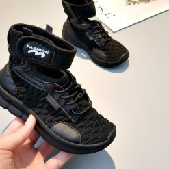High top sneakers with ankle closure. They have breathable mesh on top to keep your little ones’ feet fresh all day long.