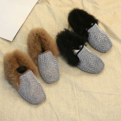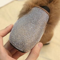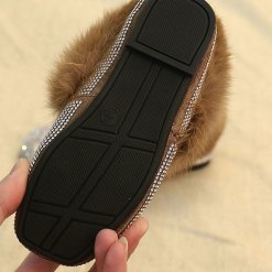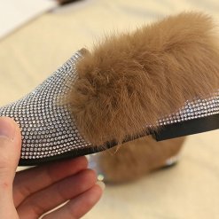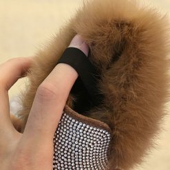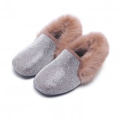Designer loafers full of Rhinestone and cosy fur on the ankle. These stylish slip-on are awesome party wear. They come in black and brown color.