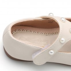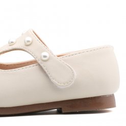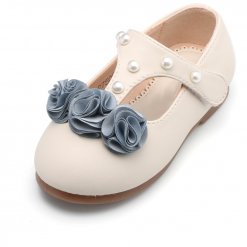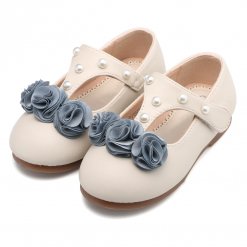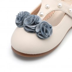 T-Strap party shoes for girls with flower on top. The pearls on the strap gives an elegant look to the sandals. These are very beautiful party shoes.