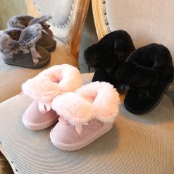 Beautiful warm boots for girls with plush fur on ankle. These beautifully stitched and decorated with lace bow on the front.